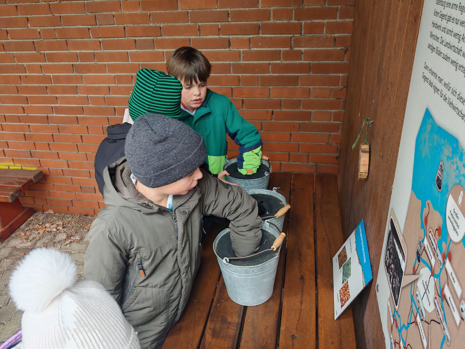 Die Drittklässler besuchten in der letzten Februarwoche den Biohof Bakenhus in Großenkneten. In Anknüpfung an das Thema „Wasser“ im Sachunterricht konnten sie auf dem Naturlehrpfad des OOWV wichtige Aspekte der ökologischen Landwirtschaft und des Grundwasserschutzes kennenlernen. Nach einem leckeren Frühstück mit Produkten aus dem Hofladen ging es auf eine Rallye über den Hof, wo auch die zahlreichen Tiere gefüttert werden durften – viel frische Landluft inklusive!