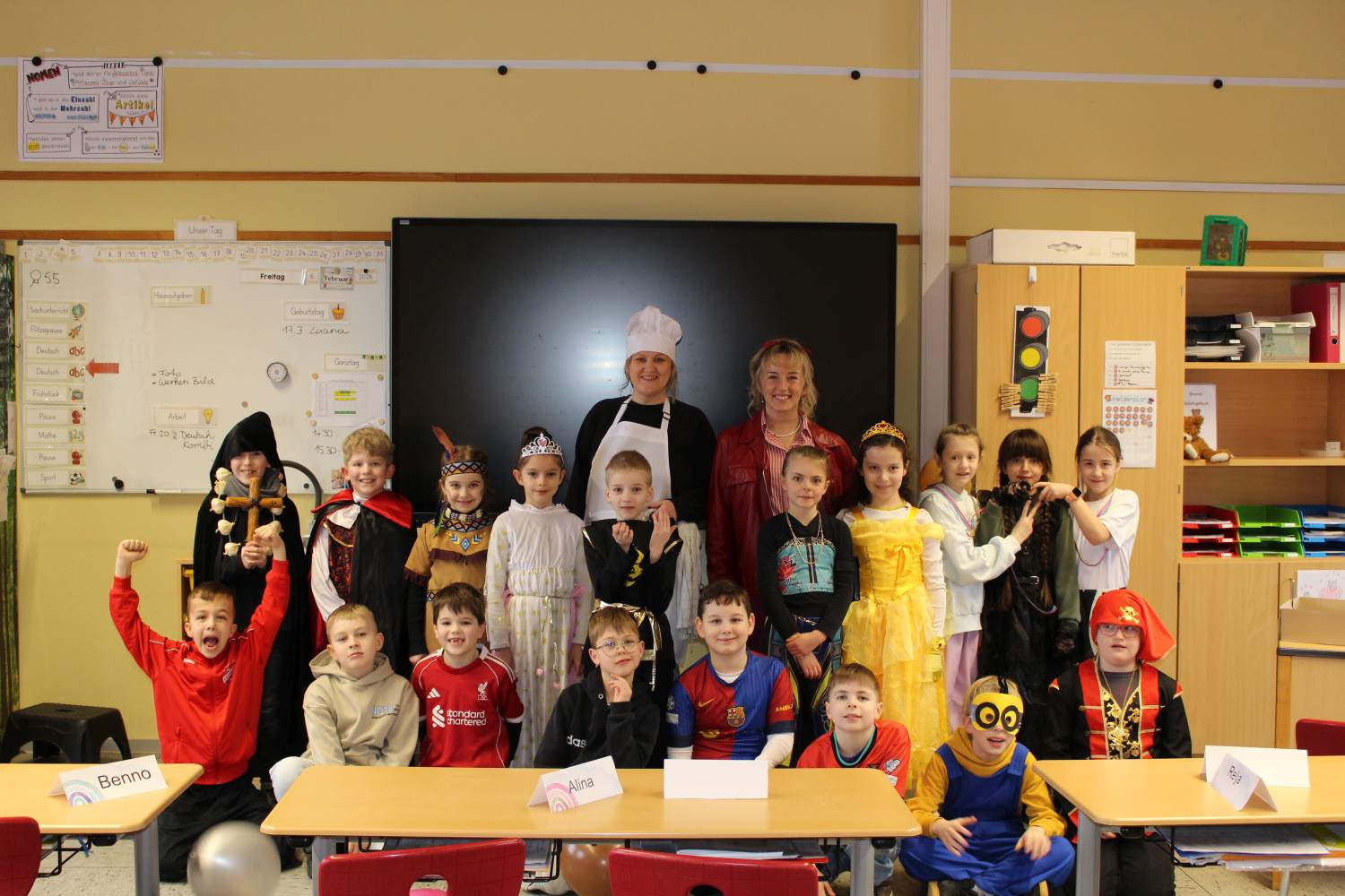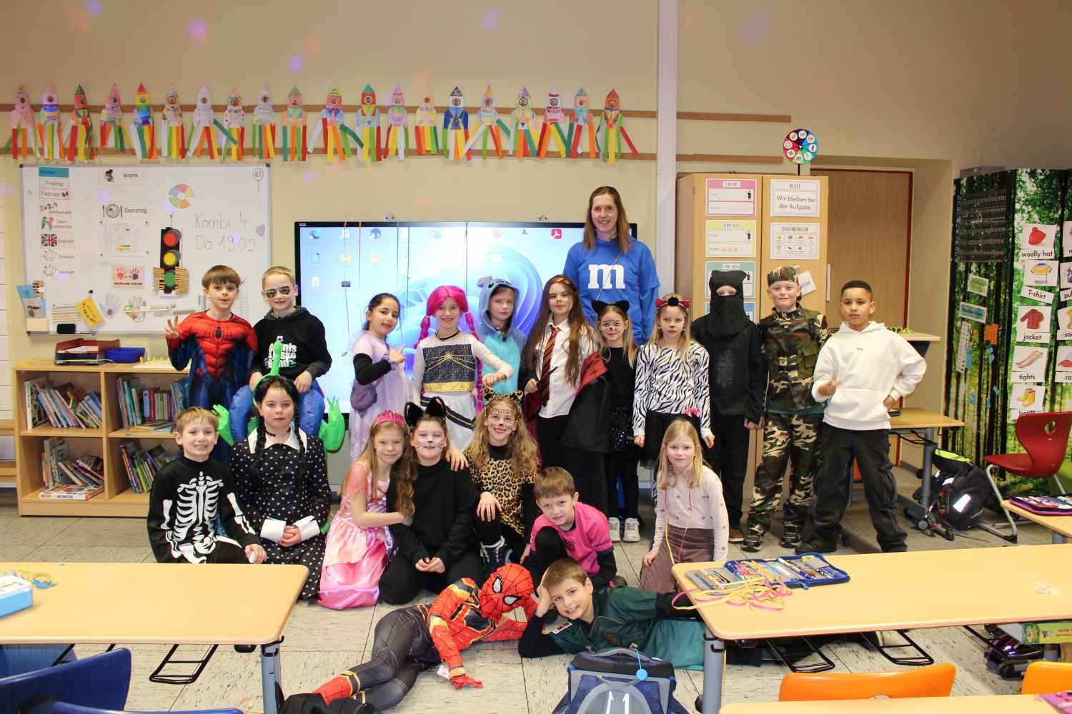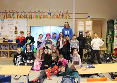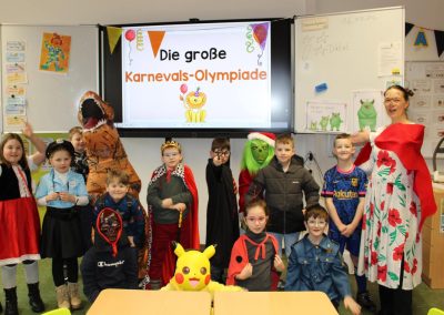 Am Rosenmontag haben wir unsere Schule wieder in einen bunten Ort verwandelt und Karneval gefeiert. In den unterschiedlichsten Kostümen ging es mit einer großen Polonäse durch die ganze Schule bis in die Pausenhalle. Dort wurde mit der ganzen Schulgemeinschaft ausgiebig getanzt und gesungen. Cappeln helau!